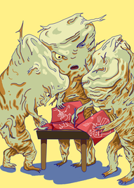 Před komorou Pupo zaváhal. „Vždyť tam bude ten Yzyl, co smrdí po zkaženém mase a je zlý jako hlas, co tě nutí pochybovat o sobě samém. Nechci s ním sdílet Komoru věčnosti, to musí být nějaké nedorozumění…“